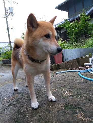 お庭に出てみる柴犬さくらですが、トイレするだけ。