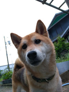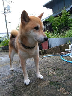 ぐじゅぐじゅの地面にブルーな柴犬さんです。