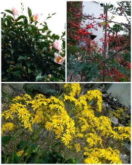 椿系のお花が咲き始め、南天も赤くなってきました。
