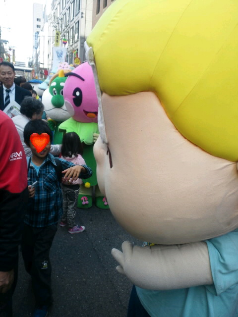 屋台巡りをしているとゆるキャラ軍団が登場!