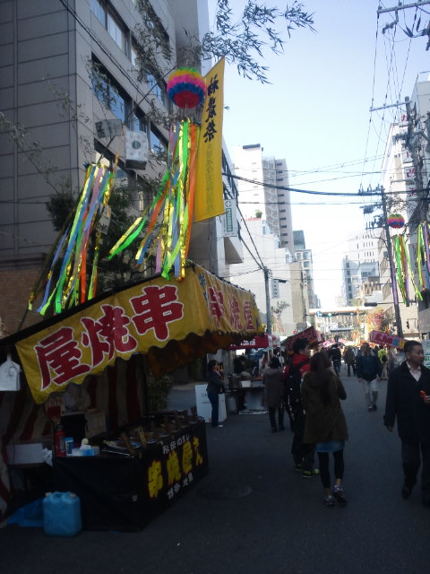 神農祭では、道修町通りに丸々屋台が並んでいます。