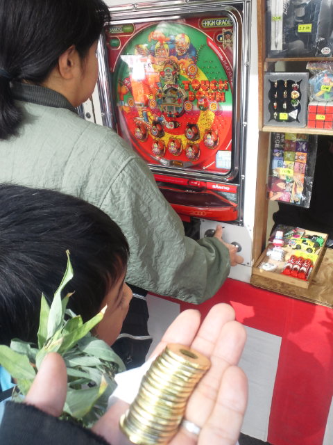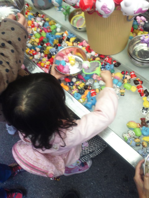 お椀いっぱいに、キャラクター人形をゲットしていた娘