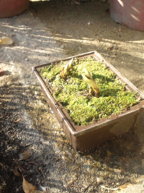 植えた鉢には、その辺にあった苔をあしらってます。