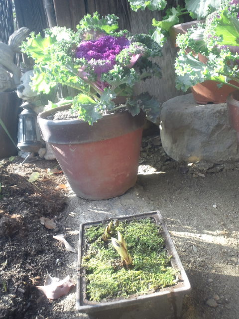 福寿草の苗を買って来て、植木鉢に植えました。