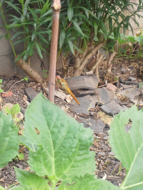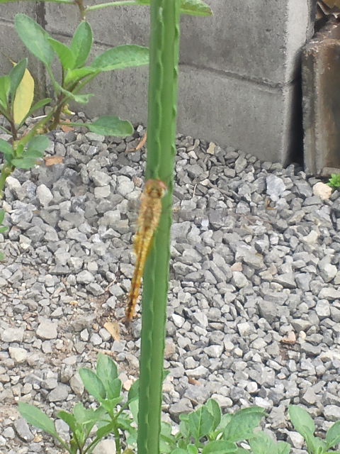 野菜の支柱にも留まるのですが、やはり途中に留まります。