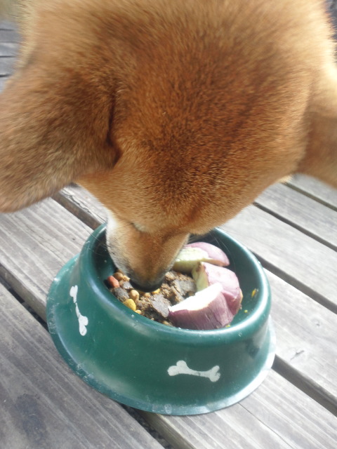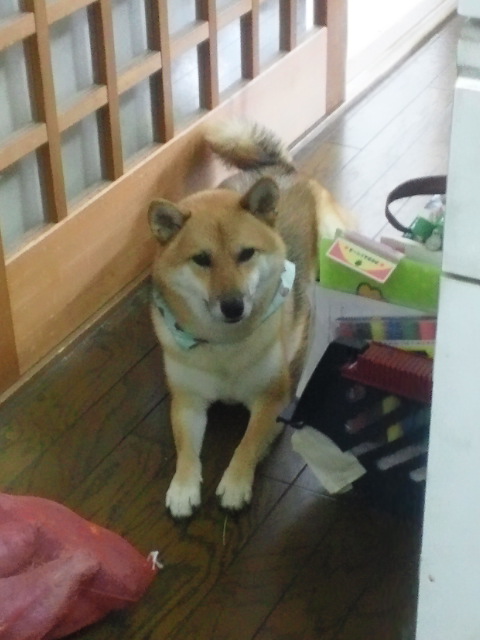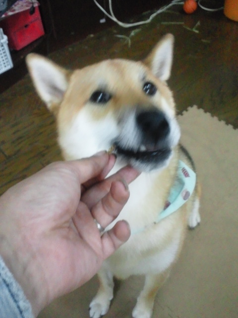 柴犬さくらも分け前をもらおうと、そうそうにスタンバイ(笑)