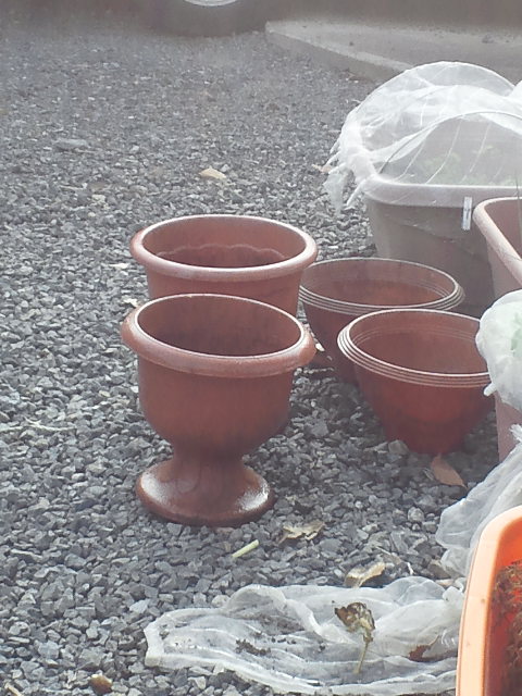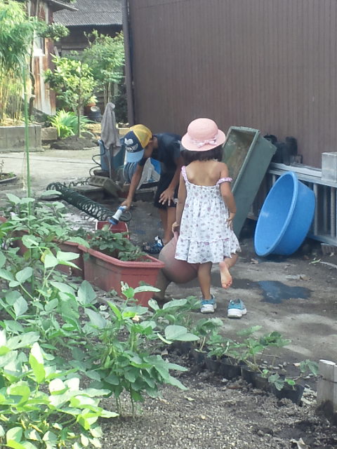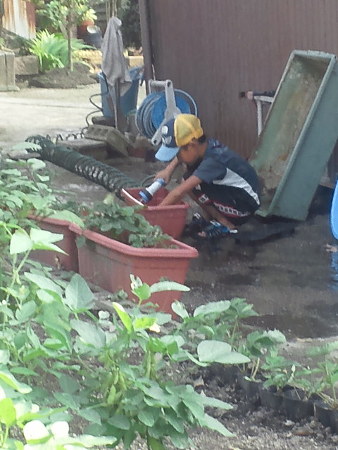水遊び感覚ですが、いつになく真剣に息子がプランターを洗ってました。