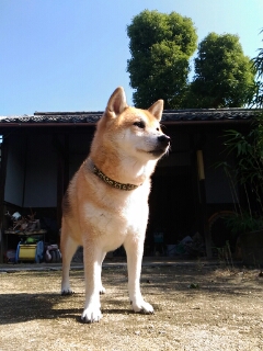 秋晴れ爽やかで、柴犬さくらもご機嫌。