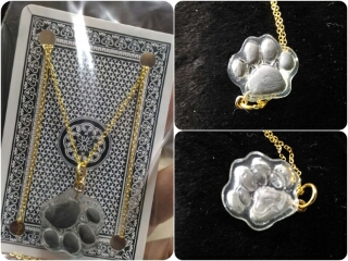レジンで作った足形に、ぷにぷに素材の肉球を付けました。