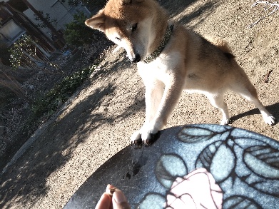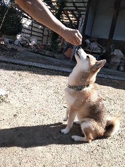 家でも外でも、オヤツは絶対な柴犬さん。