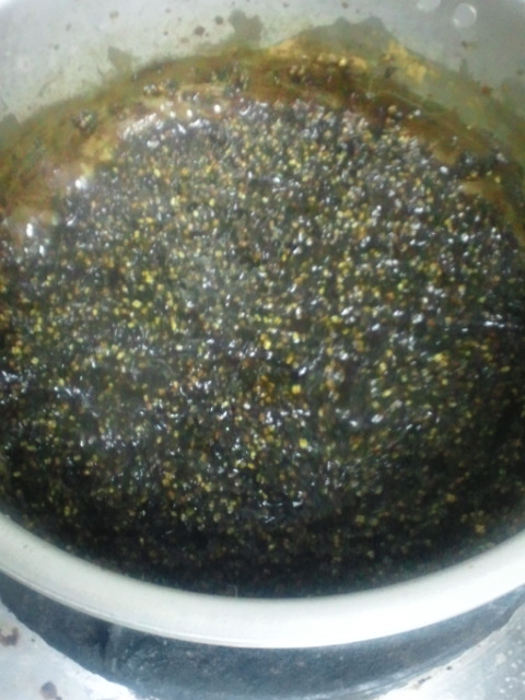 紫蘇の実が漬かる位の調味液でじっくり煮込みます。