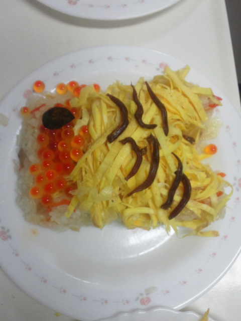 夕飯は、鯉のぼりを型取ったちらし寿司でした。