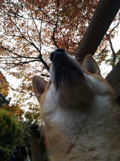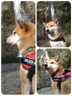 滝の側で哀愁漂わす柴犬さんですが…
