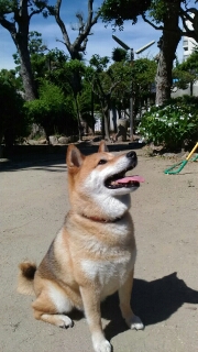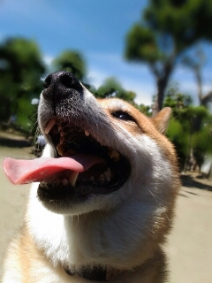 柴犬さくらは、少し外に出ただけで、暑そうです。