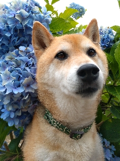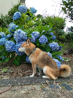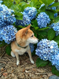 紫陽花に押し潰されそうな感じのさくらちゃん。