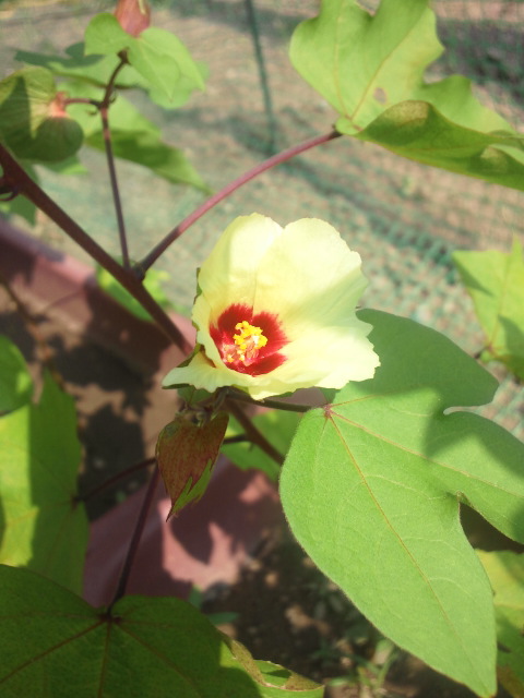 綿花の花って、不思議な咲き方します。