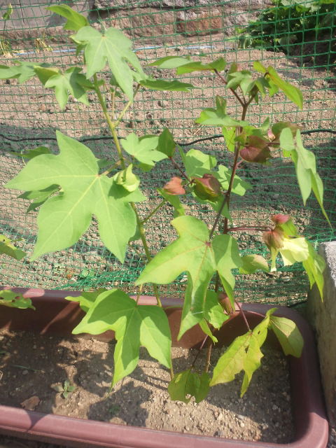 息子がプランターに植えている綿花も30cm位の草丈になりました。