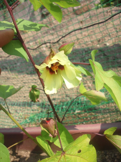 黄色く可愛い綿花の花は、初めて見ました。