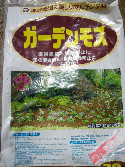 何か良い方法は無いものかなぁ~と考え、雑草防止に天然のマルチ素材「ガーデンモス」を今年は試してみます。