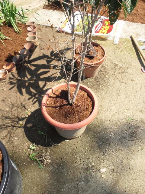 花壇の中や果樹の植木鉢も草がいっぱい。