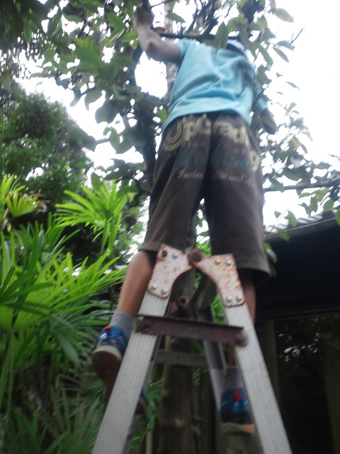 そのうち、子ども達もやりたいと言い出したので、脚立の登場です!
