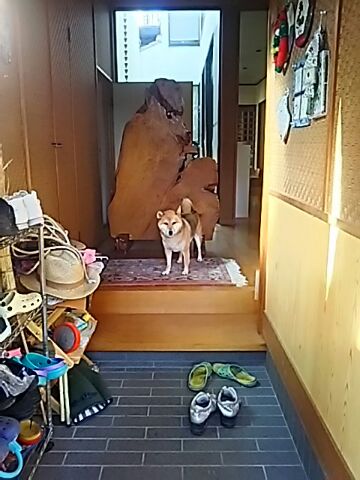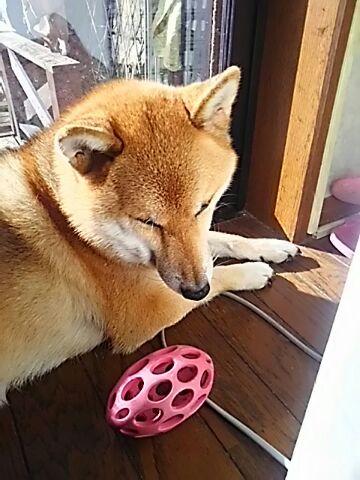 寒くなっ来たので、日溜まりに居座る柴犬さくら。
