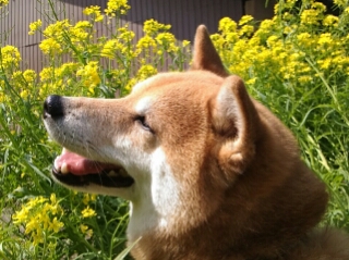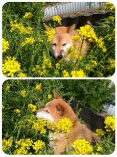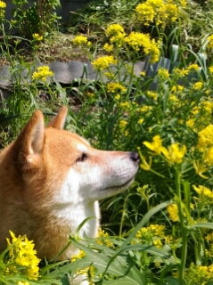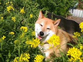 菜の花畑に捕まったなんだワンの柴犬さくらに、