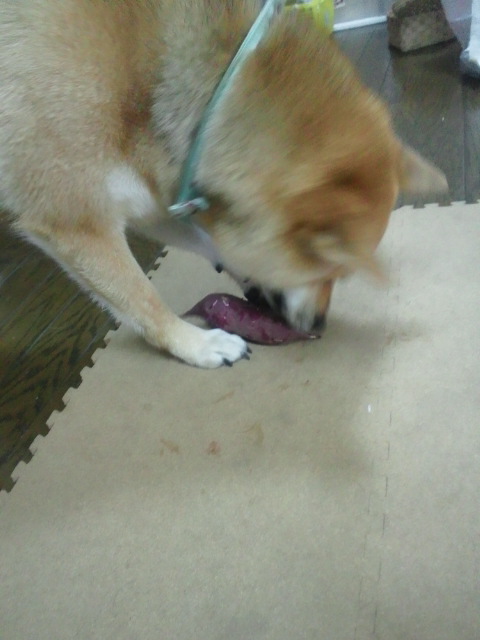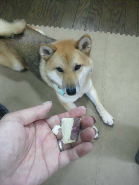 ミミちゃんの真似して、生サツマイモにチャレンジ!