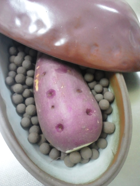 これ、中にサツマイモを入れて、周りにセラミックストーンを入れて蓋をします。