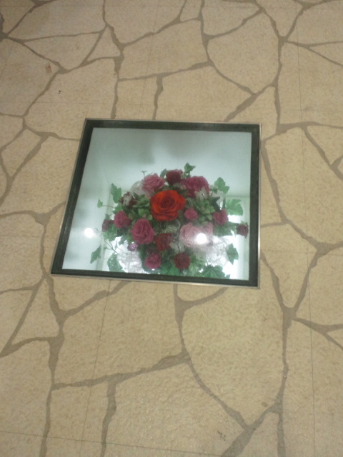 この福山サービスエリア、薔薇がテーマになってるらしく、床に薔薇が埋め込まれてます。