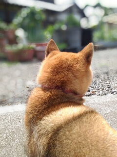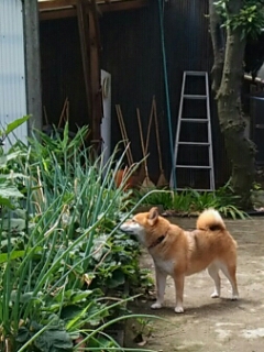 梅雨の晴れ間?に、色々チェックに余念が無い柴犬さくら。