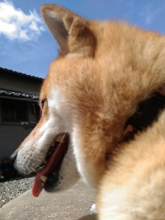 そんな中、夏らしい空を見つめて、夏を感じている柴犬一匹。