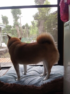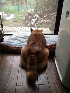 外に行きたがったくせに、雨ならこれですからね"(-""-)"
