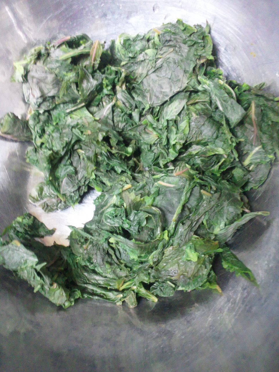 葉を絞って煮汁だけを鍋に戻します。