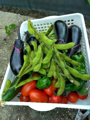 トマト、ピーマン、茄子、サンドマメ、胡瓜としっかり収穫。