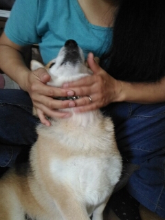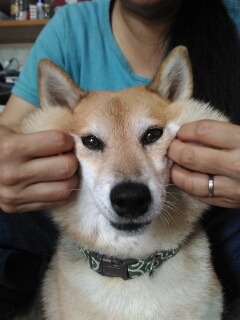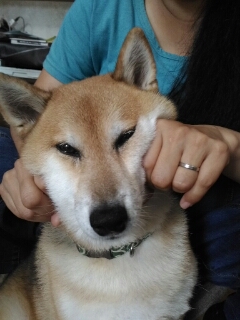 顔で遊ばないで欲しいんだワンの柴犬さくらに、