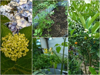 秋トマトを植えていた場所で、野良トマトが成長中。花まで咲いています。