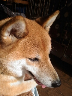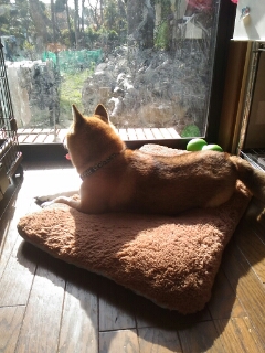 部屋に戻った柴犬さん、窓際で日光浴。