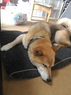 なので、柴犬さくらも朝からグダグダお昼寝タイム。