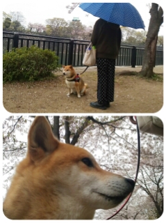 小雨が降ったり止んだりのお天気の中、桜見物。