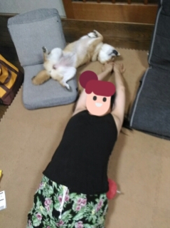 ママさんとさくらちゃん、一緒に骨盤枕していますね(笑)
