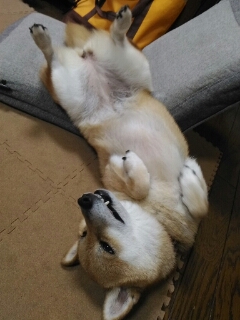 さくらさん! お見事なヘソ天! 座椅子利用とはなお立派!! 骨盤枕の代用としては最高の道具でしたね❤