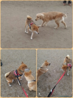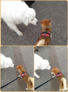タジタジな柴犬さくら。