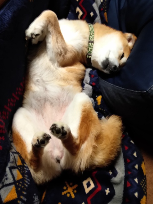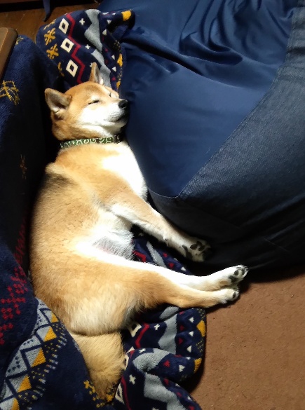 そんな寒い日だけに、昼間はビーズクッションを独り占めの柴犬さくら