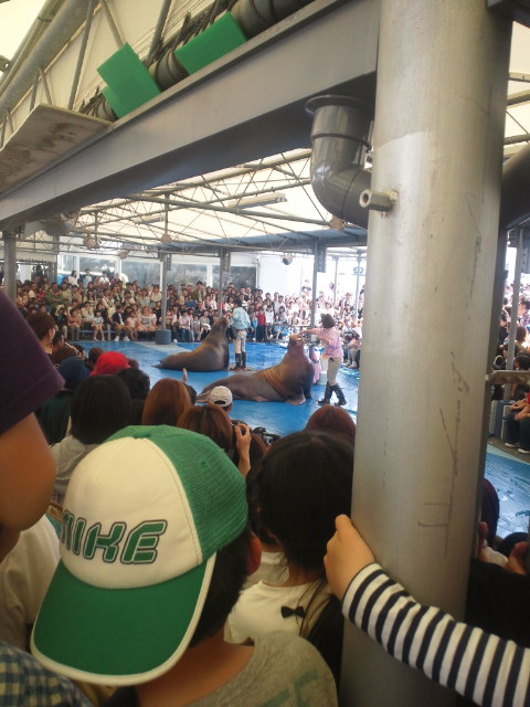 館内を見ながら移動し、アザラシのお食事ショーを見てアシカショーへ!