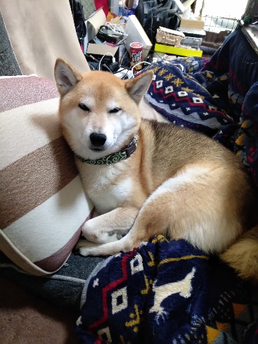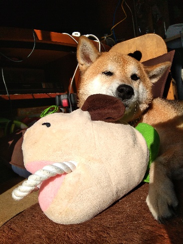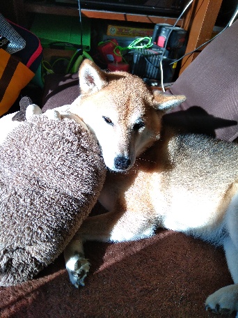 朝から陽だまりでぬぼぬぼしている柴犬さくら。