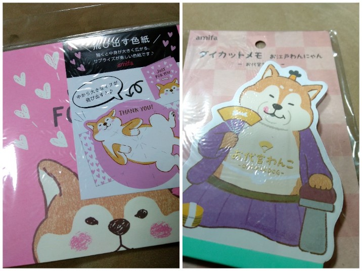 柴犬さんのメモパッドと柴犬さんのメッセージカード。