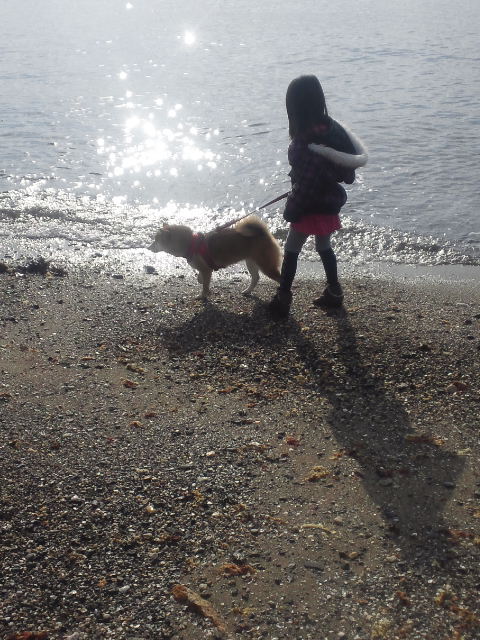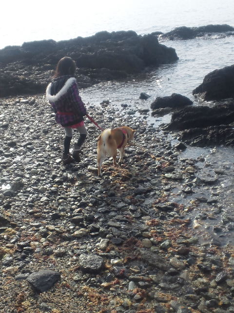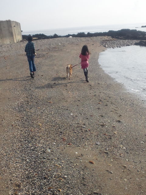 相も変わらず、徒歩1分の浜辺でお散歩。