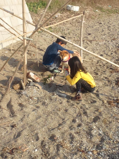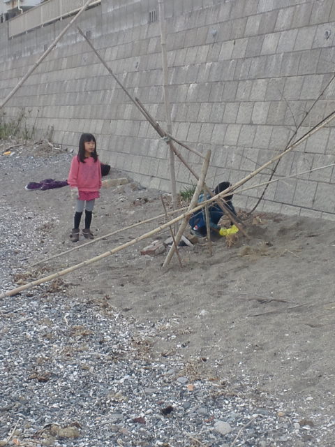 何でも、流木(流竹?)集めて、秘密基地をつくるらしい…