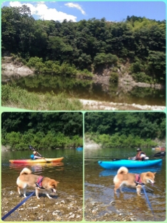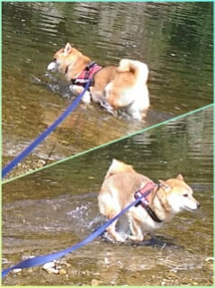 足だけなら平気な柴犬ですが、お腹がつくと慌てて岸に戻ります(笑)